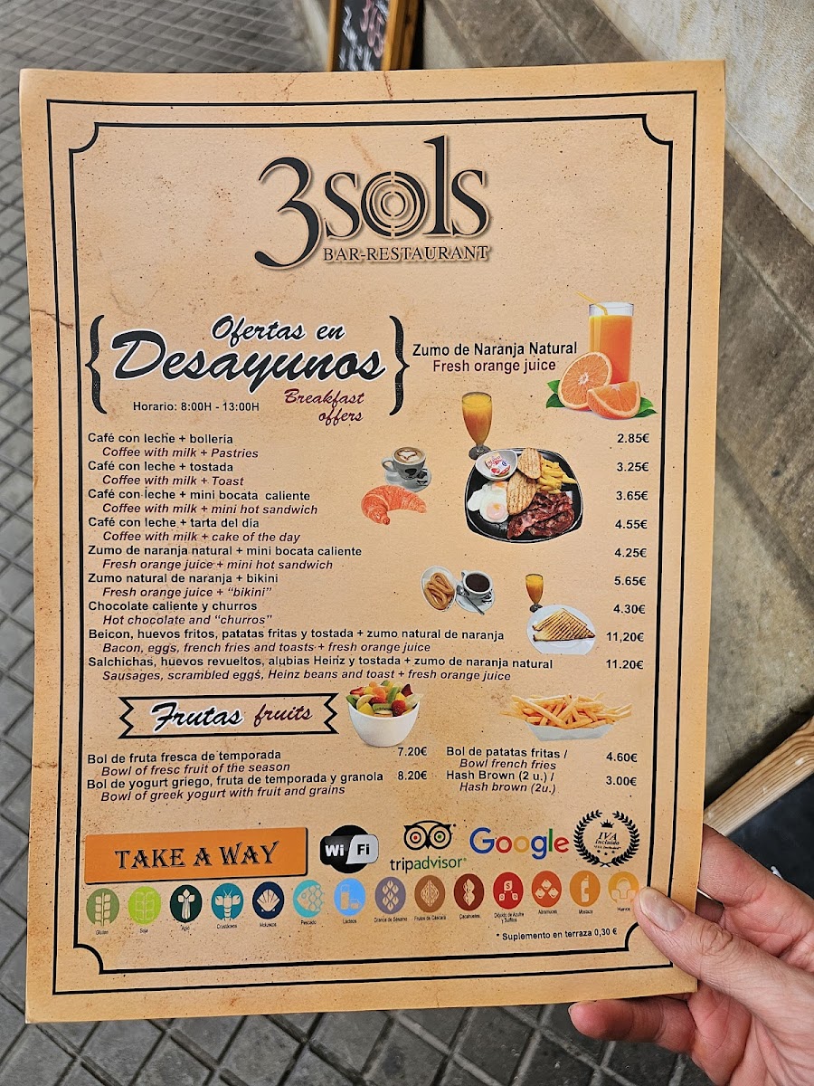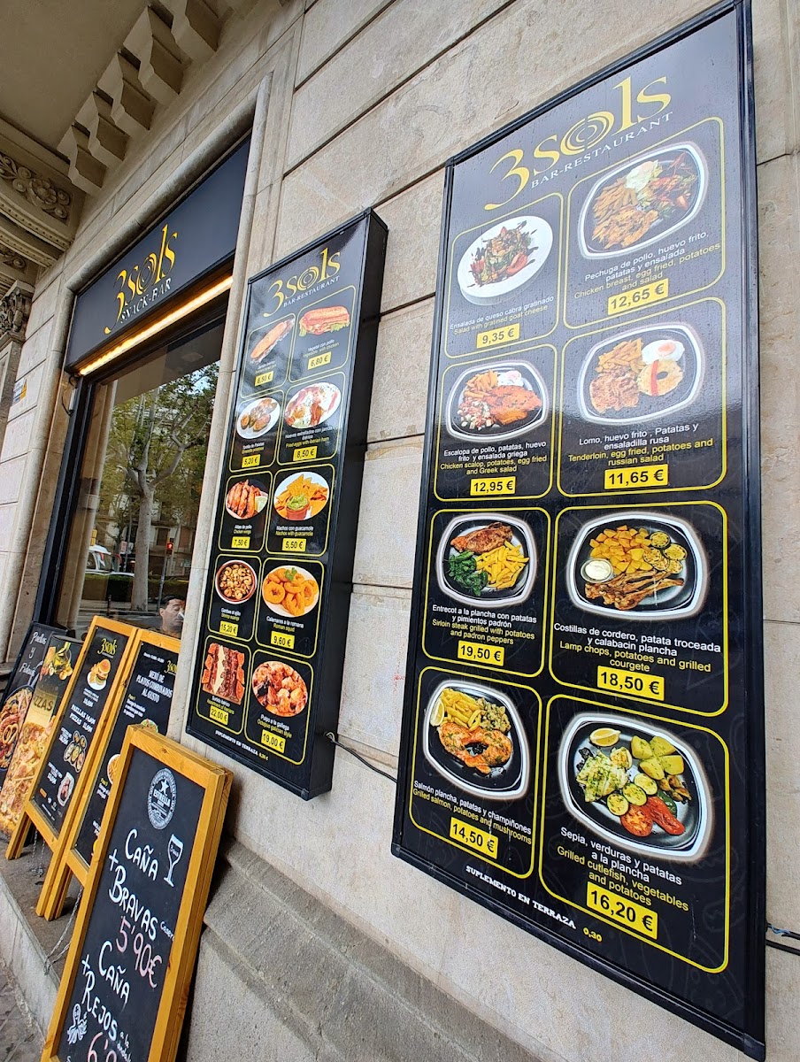 Introducing the menu at Bar Restaurant 3sols, located in the heart of L'Eixample, Barcelona, is a delightful adventure through authentic Iberian flavors. Guests rave about the outstanding tapas, particularly the tantalizing chistorra, rich Iberian ham, and crispy jamón croquetas. The seafood paella, praised for its homely taste, showcases the restaurant's commitment to freshness and quality.